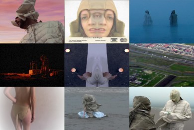 New Mobility of Home | conditions that large populations can and may face. In these photographs and video stills, people are largely mobile in self-contained clothing units as they travel through each of the prevailing climates of the near future: arctic, desert, and waterlogged tundra, illustrating different modes of survival. For this work, I travel to places that were and are in danger of drought, in need of water, or that have an excess of water due to melting glaciers or |
