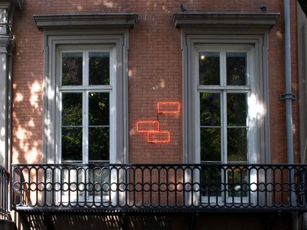 - ">brick; neon; 29.5" x 33.5"; 2009. Norwood, NYC