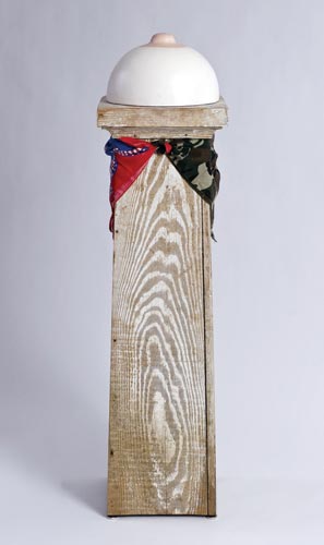porch pedestal, bandanas, plaster, tempera