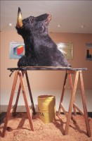 | to popular engineering, specially those structures built by street peddlers for the display of their merchandise, the model Palacios uses for the construction of his mural wheelbarow and his shelves. This interplay of audiovisual technology and popular solutions produces a kind of eclectic atmosphere. Based on the union of heterogeneous elements, ‘Zona de distension…’ is grounded in an experience of symbolic exchange that transcends disciplinary fragmentation and promotes the collaboration between distinct forms of human activity. Author: Felix Suazo | |||||||