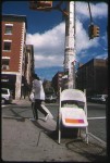 Some issues I am addressing are traditional and formal, like color, space, surface, and composition. The work also relates to graffiti and marking territory. What we throw out, and our impulse to collect and reuse what we find is documented as well. After I photograph the painted object, I walk away.