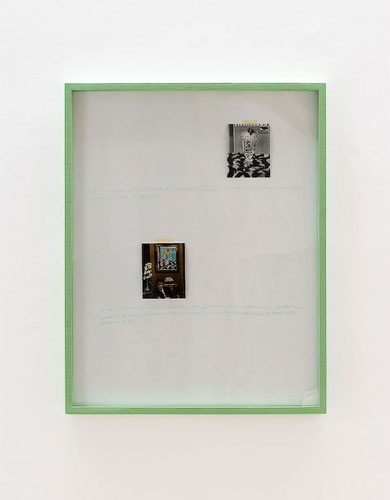 In this exhibition, the artist relies on a selection of very specific and precise examples for his story-telling: printed reproductions of artworks, crafts, an altered map, photographs and mostly ready-made items that the artist regrouped or edited. He wrote down his perceptions and insights gained through them on them. They communicate his re-considerations of his own perceptions or experiences and awareness of a more universal nature.