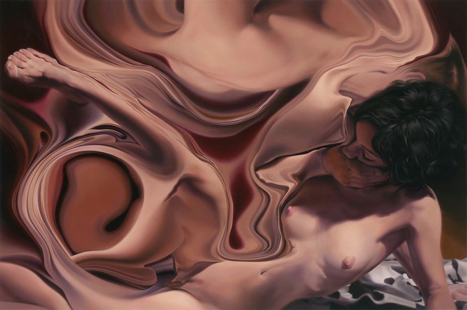 Series entitled “Together, yet apart” is consisted of paintings depicting a young couple’s intimacy. Distortions and scattered parts of their bodies are not only a result of an artistic expression – they create new, recognizable shapes (an egg, a silhouette of embryo, etc.) whose symbolism expands the pre existing narrative concept. In addition to the bodies’ gesture meanings, they suggest a turbulent human relationship that is the origin of numerous problems as well as challenges. The girl and the young man from each painting are friends of mine. Lives full of confrontations, disappointments and misfortune are not only their own – a huge number of young people all over the world live in a similar way, asking numerous questions both themselves and entire society.