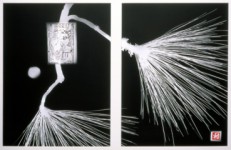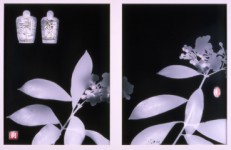 | Through the early European technique of the photogram, where plant pieces are laid directly onto photographic paper, Purdy proposes a dialogue with traditional Chinese painting and has created a resonant inversion of the ‘black mark on white silk’ that characterizes Chinese calligraphic scrolls. This reversal of tones both acknowledges the polarization of East and West and constructs a new place for them to meet.Moreover, Purdy’s utilization of the dark inky tones available with this process parallels Chinese classification of the ‘colours of the ink’, called Mo Se, which defines these tones as: dark black, light black, black, dry black and wet black. – For Purdy, making and exhibiting this work has established a means of active and creative bridging of her mixed Asian and Western ancestry. It extends her artistic vocabulary with botanical knowledge and provides an expansion of the cultural and historical references within which her work is set. The fresh combination of these elements develops a new context for the Southern Chinese Collection. | |||||||||