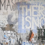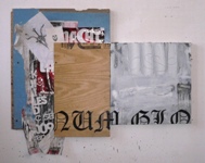 | Ellis' use of text is influenced by the everyday experience of seeing graffiti, shop signs, road markings and builder�s notations in cities globally. Employing techniques from broad brushwork to frenzied scoring and instinctive spray painting to highly controlled sign-writing, Ellis uses text as a direct expressive vehicle. By appropriating misspellings and incorrect syntax from street graffiti and personally significant lines from poetry; or repeatedly using individual words that have particular resonance for the artist, Ellis seeks to subvert language�s common usage, creating instead ambiguities and new possibilities. Combined these strategies serve to recall the worn and decrepit surfaces of the urban environment whilst engaging the audience physically and cognitively. Each surface contains its own private history and signifies the flux of both instantaneous and prolonged experience, representing constant actions upon the environment. Ellis' creation of subjective material fields recall this whilst corresponding to his own actions. Acting as mediator, Ellis intends for the work to create new and uncertain relationships between artist, material, language and audience. | |||||||||