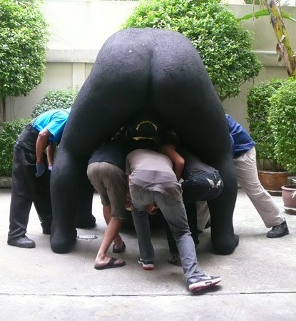 | 100 Tonson Gallery cordially invite you to the opening reception of an project �A Leg Up Society" (Thai name: Chom Rom Kon Mai Ao Nai ) by Chatchai Puipia on September Saturday 20, 2008 at 6 pm. This is Puipia�s first exhibition in many years; it also is the first time that Puipia works in collaboration with other artists in the area of film, photography, sculpture, video and literature. Apart from sculpture installation that will transform the visual presentation of 100 Tonson Gallery in the next several months, the content or focus of the exhibitions may vary according to different inputs of the collaborative artists. The aim of the project is to raise funds as grants for artists and writers, either to enable them to create their artworks or sometimes producing/ presenting something that would impact art society on a larger scale. Viewers are welcome to visit the gallery to see A Leg Up Society in the next several months as usual (without entrance fee). For those who would like to be more involved, this project will be open to the public to apply for membership. Details about membership applications and benefits will be announced soon but the very least that the member would receive is the publication produced and edited by Puipia. A Leg Up Society will be on view at the galllery from September 2008 - January 2009, "Chapter 1: Count me in" will be from September 20 to October 26, 2008 Further information, please contact us at +66 (0) 2 684 1527, +66 (0) 81 910 9940. NEWS September 20 � November 26, 2008 , Araya Rasdjarmrearnsook, Chatchai Puipia, Porntaweesak Rimsakul and Yuree Kensaku in "Traces of Siamese Smile: Art + Faith + Politics + Love", Bangkok Art and Culture Center. The exhibition, featuring 300 works including more than 100 Thai and international artists is Curated by Prof. Dr. Apinan Poshyananda. Araya Rasdjarmrearnsook, who recently received Silpatorn Award 2008 in Visual Art, launches her new video works �Two Planets Series� which is a follow up from her photo series. Chatchai Puipia presents his large sculptures �Better Than Ever: Pikaboo! Heard you are desperately seeking a leader around here� with collaborative video work by Shane Bunnag �The Shape of Things to Come� and also �Siamese Smile� Portrait painting. Porntaweesak Rimsakul plays with imagination through his past work titled �Conversation��. While Yuree Kensaku will display a successful piece selected from her solo show called � Love in Platinum Frame�, 2007. September 25 � October 25, 2008, Yuree Kensaku�s Solo Show at Gallery VER �Same Place While The Clock's Hands Pace�. This is story about a �House�, the exhibition explores the notions of home and memory. Kensaku uses household found objects and turns them into painting and sculptures, capturing the essence of memories past. September 6-November 15,2008 , Porntaweesak Rimsakul in Busan Biennale under the theme of 'Expenditure', Korea. Rimsakul exhibits � Pet� ,his whimsical piece taken from various shows which toys and investigates the themes of death and amusement. Merging the deadly act of smoking with enjoyment through the use of Mechanicalize wind-up cigarette packets. See his work at the Busan Museum of Modern Art. September 26 � November 30, 2008 Porntaweesak Rimsakul in Kuandu Biennale, Taipei �I Have a Dream� the theme of Biennale 2008, which is staging solo exhibitions by 10 Asian artists at the Kuandu Museum of Fine Arts. Porntaweesak is the represented Thai Artist, shows his VDO works �RGB� and �The story of teapot�. September 27 � October 31, 2008 , Pichaya Khunnawat in �Basic & Instinct� Drawing Exhibition at Bangkok University Gallery, Bangkok After the artists well received solo exhibition at 100 Tonson Gallery and ShContemporary 07, Pichaya has been working on a new body of work. In this group show, curated by Ark Fongsmut, he presents his series titled �just...panic!� using gouache and acrylic on paper. | ||||