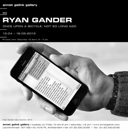 | ANNET GELINK GALLERY: RYAN GANDER - Once Upon a Bicycle, Not So Long Ago - 13 Apr 2013 to 18 May 2013 Current Exhibition | ||||