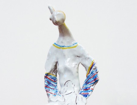 | Alessandro Pessoli Fired People September 14 — October 20, 2012 Opening reception: Friday, September 14 from 6 - 8pm For his fifth solo show at Anton Kern Gallery, Italian artist Alessandro Pessoli has put together a group of painted ceramic sculptures of varying sizes and scale. Largely figurative and richly colored, often combined with bronze or canvas elements, the work radiates with high saturation and glazed brilliance. The sculptures are arranged in relationship to each other while representing portraits of sorts, individual figures, or, set in box-like constructions, groupings of figures and objects reminiscent of the teatrini (small theaters) known from mid-century Italian artists such as Martini, Melotti, and Fontana. Pessoli ʼ s illustrious personnel ranges from the Emperor Vespasian to Pier Paolo Pasolini, from Don Quixote and Sancho Panza to Arthur Rimbaud and Paul Verlaine, but also includes Petunia the duck trailed by Chimney Nose and Sandrino the cat. This is Pessoli ʼ s first show in New York after moving from Milan to Los Angeles, and the influence of the City of Flower and Sunshine is clearly noticeable. Fired People doesn't have a theme; it's an anarchic show, like people meeting in a square without apparent reason. The work is the attempt to find the hidden vitality of imagination by abandoning stylistic coherence and the compactness of a dominant narrative in favor of the freedom to cross from one imagery and aesthetic to another. Working without precise lines of reference empties the figures ʼ rhetoric and produces a sense of nostalgia, somehow mirroring a Western culture that is at its sunset, just the reflex of itself. Known for his fluid and luminous painting technique, as evident in his watercolor drawings, Pessoli transforms the brightly colored ceramic sculptures into extensions of his painted scenes articulated in three-dimensional form. There ʼ s a dynamic balance between the malleable clay and the fluidity of the watercolor-like or airbrushed paint application and sense of coloration. Pessoli combines familiar elements such as the chimney and a range of sexual symbols with new ideas such as the separation of colors into rainbowlike bands, the decorated bronze casts, and mixing such disparate modes of representation as a descriptive and detailed naturalism with child-like abstraction and expressiveness. Yet Pessoli ʼ s essentially humanist language always speaks with the love for the poetry of the material. This exhibition will coincide with Alessandro ʼ s solo exhibition at SFMOMA. Since the artist ʼs seminal New York debut at the Drawing Center in 1997, Pessoliʼ s work has been shown in numerous exhibitions, including solo presentations at the Collezione Maramotti, Reggio Emilia, Italy (2011), MACRO Museo d´Arte Contemporanea Roma, Rome, Italy (2009), and Chisenhale Gallery, London (2005), as well as group shows at the Hessel Museum of Art & Center for Curatorial Studies Galleries at Bard College, Annandale-on-Hudson, NY (2006), the Philadelphia Museum of Art (2004), the Hammer Museum, Los Angeles (2003), and the Fondazione Sandretto Re Rebaudengo, Turin, Italy (2002). Pessoli ʼs work was prominently featured in Italics: Italian Art between Tradition and Revolution, 1968-2008 at the Palazzo Grassi, Venice (2008) and the Museum of Contemporary Art, Chicago (2009). A set of 30 drawings was included in the Venice Biennale as part of the Making Worlds section curated by Daniel Birnbaum (2009). Opening September 28, SFMOMA is presenting Pessoliʼ s first US museum solo-exhibition. The exhibition will open on Friday, September 14 and runs through Saturday, October 20, 2012. The gallery is open Tuesday through Saturday, 10 am - 6 pm. For further information and images, please contact the gallery at (t) 212.367.9663 or email: [email protected]. Upcoming exhibition: Eberhard Havekost (October 25 – December 15, 2012) | ||||