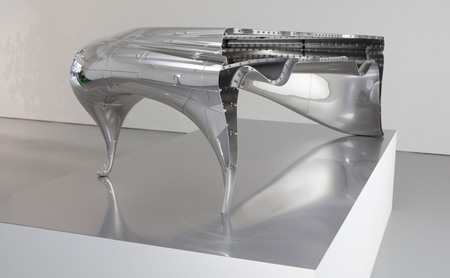 | Jeroen Verhoeven The Curious Image 12 May � 16 July 2011 Preview: Wednesday 11 May, 6�8pm Blain|Southern is delighted to present The Curious Image, the first solo exhibition in the UK by the celebrated Dutch artist and designer Jeroen Verhoeven. The centrepiece of the exhibition is Lectori Salutem, 2010, a monumental creation made from highly-polished steel. While ostensibly a desk, its flowing contours and reflective surfaces play smoke and mirrors with the eye; from some aspects it looks like a machine, from others an object of hand-crafted beauty. Like Verhoeven�s earlier Cinderella Table, 2005, which is now in the permanent collection of both the Victoria and Albert Museum, London, and the Museum of Modern Art, New York, the work combines highly skilled craftsmanship with complex industrial processes. One side of the desk seems to have been spliced in two, exposing the beauty of the engineering within. When the work is viewed from certain angles, two silhouettes can be seen, depicting Joep, Verhoeven�s twin brother, and Judith de Graauw, who work alongside him to form the Dutch design house Demakersvan. Lectori Salutem thus tells the story of its own creation, allowing the viewer an insight into the physical construction of the work, as well as providing a highly personal link with its makers. Verhoeven sees this as an essential element of Demakersvan�s output: �We are storytellers, from fantasy to factory, from statement to product�. In contrast to the solidity of the desk, Verhoeven�s chandelier, Virtue of Blue, 2010, is a delicate construction featuring 500 solar panel cells cut into the shapes of four different breeds of butterfly. These cluster around a flame-like, hand-blown glass bulb and, though they are static, appear to be in flight. Another remarkable element of the chandelier is that it is self-sustaining; like real butterflies, which use the rays of the sun to raise their own body temperatures, the wings of the chandelier butterflies absorb energy during daylight hours to provide power for the light they surround. For further information on the exhibition, please contact Mark Inglefield T: +44 758 419 9500 | E: [email protected] | ||||