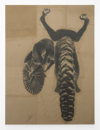 | BLUM & POE Is Pleased to Announce Tim Hawkinson May 22 - June 26, 2010 Opening reception Saturday, May 22, 2010 6-8pm Blum & Poe is pleased to announce our first solo exhibition of new work by Tim Hawkinson. Tim Hawkinson�s practice is known for its sprawling, surrealistic self-portraiture in which the body, through intense introspection, becomes an alien landscape open to radical redefinition and transformation. This artistic agenda is mirrored materially by Hawkinson�s use of familiar and ubiquitous consumer packaging and household objects in highly unconventional ways. The new work continues these refrains, while also exploring more pointedly, temporality, mortality, and the cyclic. Hawkinson works in a wide array of media involving sculpture, painting, photography, and installation. The exhibition reflects this range, with such pieces as Orrery, a towering eight-foot tall sculpture of a woman at a spinning wheel atop a platform of rotating concentric circle tire treads. This piece looks to mechanical models used to illustrate the motions of the planets and their moons in our solar system. A sculptural collage of water bottles, plastic shopping bags, recouped hardware, and odds and ends comprise the woman�s head, hands, eyes, ears, and spindle; every part of the piece is interconnected and eternally spinning. Even the pattern of her dress creates the illusion of motion with its �Rotating Snakes� pattern designed by Kitaoka Akiyoshi. Wheels upon wheels, this hyperkinetic sculpture resembles a Whirling Dervish, a hypnotic mystical dancer forever circling and cycling between the material world and the cosmic. A companion sculpture, Candle, takes the form of a giant foam candle, nearly eight feet tall. The dramatic scale propels this domestic object into a caustic landscape and volcanic totem. A central wick appears to erupt in flames, sending a cascade of Hawkinson�s cast heels and toes down the side in a revolving wax waterfall. A small door on the side of the candle reveals a chamber lined with an emergency blanket that bathes the handcrafted motor in an orange glow, evoking Earth�s fiery recycling processes. The burning candle also references 17th century vanitas paintings and their reflection on mortality. In a large collage, Bike, Hawkinson assembles self-portrait photos printed in the negative to build a fleshy and precarious motorcycle. Hawkinson is suspended across an empty backdrop, his body reconfigured such that arms and legs become handles and spokes, and fingers, braided and multiplied, become tires. Eerie structural correspondences and analogous traits between the body�s composition, its locomotion, its internal cycles, and mass-produced two-wheeled motor vehicles give way to a sense of the �self� as �other�, a subject that is explored throughout Hawkinson�s practice. Tim Hawkinson has exhibited widely internationally since 1981. He is been the subject of over forty solo exhibitions, a selection of which includes: Tim Hawkinson: Mapping the Marvelous, Museum of Contemporary Art, Sydney, Australia (2007-2008); Zoopsia: New Works by Tim Hawkinson, The Getty Museum, Los Angeles, CA (2007); Tim Hawkinson, Whitney Museum, New York, NY and Los Angeles County Museum of Art, CA (2005); Directions: Tim Hawkinson, Hirshhorn Museum and Sculpture Garden, Washington, D.C. (2001); and �berorgan, Mass MoCA, North Adams, MA (2000-2001). Hawkinson�s work can be found in several public collections, including the Los Angeles County Museum of Art, CA, Museum of Contemporary Art, Los Angeles, Museum of Contemporary Art, San Diego, Indianapolis Museum of Art, and the Whitney Museum, New York. In 2002, The Stuart Collection commissioned a 24-foot, sculpture constructed from eight granite boulders forming a teddy bear. Bear is permanently on view on the campus of the University of California, San Diego. Tim Hawkinson received his M.F.A. from UCLA and lives and works in Los Angeles. TIM HAWKINSON Selected Biography Born San Francisco, California, 1960 Education University of California at Los Angeles, Los Angeles, CA, M.F.A., 1989 San Jose State University, San Jose, California, B.F.A., 1984 Selected One-Person Exhibitions 2009 PaceWildenstein, New York, NY 2008 Tim Hawkinson, Gow Langsford Gallery, Auckland, New Zealand 2007-2008 Tim Hawkinson: Mapping the Marvelous, Museum of Contemporary Art, Sydney, Australia (cat) 2007 Zoopsia: New Works by Tim Hawkinson, The J. Paul Getty Museum, Los Angeles, CA Tim Hawkinson, Nyehaus, New York, NY (cat) Tim Hawkinson: How Man is Knit, PaceWildenstein, New York, NY (cat) 2005 Tim Hawkinson, Whitney Museum of American Art, New York, NY (cat) Tim Hawkinson, Ace Gallery, Los Angeles, CA An Empty Space: Tim Hawkinson, Akira Ikeda Gallery, New York, NY 2004 Tim Hawkinson, Akira Ikeda Gallery, Berlin, Germany 2002 �berorgan, Ace Gallery, New York, NY 2001 Directions: Tim Hawkinson, Hirshhorn Museum and Sculpture Garden, Washington, D.C. 2000-2001 �berorgan, Massachusetts Museum of Contemporary Art, North Adams, MA (cat) 2000 Tim Hawkinson, Miyake Design Studio, Tokyo, Japan Tim Hawkinson: New Work, White Cube, London, UK (cat) Pentecost, Ace Contemporary Exhibitions, Los Angeles, CA Tim Hawkinson, Power Plant Contemporary Art Gallery, Toronto, Canada (cat) 1999 Tim Hawkinson: Art of the Machine, Ace Gallery, New York, NY Tim Hawkinson: New Works, Akira Ikeda Gallery, AIG Exhibition/Taura, Japan (cat) 1998 Pneumatic Quilt (collaboration with Issey Miyake), Ace Contemporary Exhibitions, Los Angeles, CA 1996 � 1997 Humongolous: Sculpture and Other Works by Tim Hawkinson, organized by The Contemporary Arts Center, Cincinnati, OH. Traveled to: Akron Art Museum, Akron, Ohio, August 24 � October 27; Center for the Arts, Yerba Buena Gardens, San Francisco, September 6 � October 27; The Arnoff Center for the Arts, Alice F. and Harris K. Weston Art Gallery, Cincinatti (concurrent exhibition with The Contemporary Arts Center, Cincinat