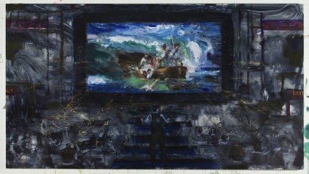 Angela Dufresne, Jaws the Pre-quill- A Copley-Keaton Montage (2012) Oil on canvas 60 X 108 inches | |||