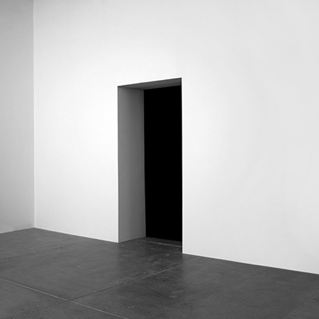 | CRG opens its doors in March with Jim Hodges. The exhibition space has been transformed by two new major works. In one room of the exhibition, walls have been removed to allow natural light to reflect on the faces of 10 canvases that form a singular freestanding sculptural work titled �and still this�. Each canvas is connected to the other creating a semicircle or arc. The surfaces have been gilded with 24k gold leaf and range in size sequentially; each being reduced in both dimensions in equal increments progressing from largest to smallest. The imagery is defined through multiple layers of gold leaf and varying texture to produce an array of patterns and pictorial renderings that range from those that Hodges has used in the past, such as shapes inspired by camouflage and other patterns found in nature to heavenly bursts of light or sun shining through formations of clouds and atmosphere. The second work in the exhibition, titled 'the dark gate', stands centrally in a separate darkened room where the only source of light emanates from a single light bulb within a massive square wooden box. On one side of the box two double doors open to reveal its interior. From here the viewer can see that the back of the box is open, though bordered by a number of large sharpened steel spikes that converge from the perimeter of the box's opening to its center; hindering the viewer from passing through. For the duration of the exhibition a perfume made by Hodges will be applied to the spikes daily. In addition to the two focal works there will also be recent works on paper on view. | ||||