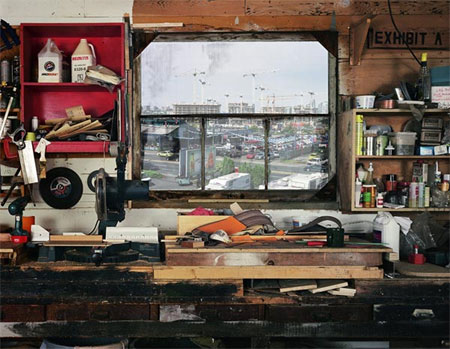 | CHRISTOS DIKEAKOS Catriona Jeffries, Vancouver 26 March � 25 April, 2009 Opening Reception: Thursday 26 March, 7 � 9pm Catriona Jeffries Gallery is pleased to announce the upcoming exhibition of new work by Christos Dikeakos. Grounded in the photoconceptual traditions of Vancouver, which began in the late 1960s, Dikeakos� photography practice has consistently explored local histories, the conditions of modernity and the socio-economic relations of particular sites. For approximately forty years Dikeakos has focused his attention on the changing landscape surrounding the False Creek inlet which cuts into the eastside of Vancouver. Traditionally used as hunting and fishing grounds by First Nations peoples, the area bordering this waterway has undergone transformation from an industrial hub (filled in to accommodate the CPR rail route and roadways in the early 1900s), to an area marked by a fraught history of urban renewal and international exhibition, hosting the world Expo in 1986 and now the upcoming 2010 winter Olympics. Dikeakos� persistent picturing of this zone, often as a de-featured and constantly shifting landscape, with Vancouver�s iconic and touristic mountains and high-rises forming the backdrop, considers the site in relation to larger economic and ideological shifts occurring globally. In this exhibition, Dikeakos� photographs reveal a moment of rapid development in which Vancouver�s presence on the world stage and the creation of a new imagined neighbourhood for a privileged class is causing counter-movements in the nomadic urban underclass. Places of production, such as the building in which Dikeakos and other artists have studios nearby, are now becoming temporary shelters for the homeless. In Window view, Olympic village, Main Street, Dikeakos� large-scale frame within a frame showing the Lego-like progression of towers and cranes through the window of an increasingly extinct working environment crammed with tools and materials, exposes the polemic between sites of production and consumption/domestication. The rapidly changing exterior landscape is framed by a painterly studio still life arrested in time. As with past works in which Dikeakos has superimposed First Nations place names onto the urban landscape, in this project he also marks a moment in history which pre-supposes an erasure of what came before. These reflections are similarly interwoven into Dikeakos� most recent work The Room which offers a rare close-up view of a local First Nations art gallery/curio store located at the back of an army surplus shop. Through his attention to the history of the photographic medium and his careful mapping of these sites, Dikeakos� new body of work engages with the microcosm as a way of speaking to the close interstices between the local and global at a time when these issues are at the forefront of mainstream consciousness. For more information contact Catriona Jeffries or Charo Neville at (01) 604 736 1554 or cat_jeffries_gallery @telus.net | ||||