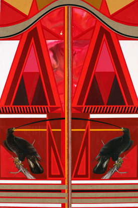 | Antonio Adriano Puleo I Am a Bird Now May 23 - June 27, 2009 Cherry and Martin presents Antonio Adriano Puleo�s exhibition I Am a Bird Now, featuring ecstatic murals, paintings and sculpture that possess a bold fusion of natural history and modern abstraction. This will be the first solo exhibition at the gallery�s new location at 2712 S. La Cienega Blvd. Antonio Adriano Puleo�s pictorial exploration is a twenty-first century hybrid of art history, including the painterly experimentations of modern abstraction as well as the illustrations of the 19th century American naturalist John James Audubon and Medieval illumination. The third in a series of solo shows by Puleo, I Am a Bird Now, follows up on two previous exhibitions, To This World I Must Give In (2005) and Birds and Beasts (2007). Whereas Puleo�s previous exhibitions furthered a pictorial investigation of the tensions between opposing forces (Birds and Beasts) and the individual�s place amongst these tensions (To This World I Must Give In), Puleo�s new body of work explores the manipulation of these tensions through symmetry, pattern and the hermeticism of alchemy. Inherent in Puleo�s work is the translucent dimension of ecstasy, the idea that revelation can be had through the polarities of perfect geometrical proportions, radiant color and a visceral connection to the material world. Central to the exhibition and the artist�s concerns are two wall installations, Follow The Light (2009) and They Know Why They�re There (2009). Painting becomes architecture as vibrant bands of color seamlessly emerge from strategically placed, intimate canvases. These small paintings, whose compositions magnify exponentially onto the gallery walls, chart the implicit energy of expansion and contraction. Antonio Adriano Puleo has recently shown work at LAXART (Los Angeles), China Art Objects (Los Angeles) and Schmidt Dean (Philadelphia). He has shown at the Flash Art Museum in Trevi and the Fondazione Antonio Ratti in Como, Italy, as well as at galleries in New York, Las Vegas, Boston and Portland. Articles and reviews have appeared in Art Review, The New Yorker, Nylon, LA Weekly and Las Vegas Sun. Puleo graduated with an MFA from the University of California, Los Angeles. Cherry and Martin gallery hours: Tuesday - Saturday 11am-6pm or by appointment. For further information and images contact Mary Leigh Cherry or Philip Martin at 310.559.0100. | ||||
