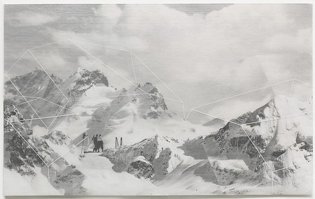 | ULRIKE HEYDENREICH 04.05. - 01.06.2013 ...which, when shone on by the sun, give off a splendid sparkle like a mirror. ...die, wenn die Sonne sie bescheint, einen blendenden Glanz wie Spiegel von sich geben. aus: Gottlieb Sigmund Gruner: Die Eisgebirge des Schweizerlandes, Bern 1760 Ulrike Heydenreich verfolgt in ihren jüngsten, nun erstmals präsentierten Werken ihre Motive weiter und entwickelt sie zugleich fort: Ihr Interesse für Kartografie und das grundlegende Thema der Raum-Zeichnung bleiben virulent und erhalten neue Ausformungen. Das Erproben von unterschiedlichen Perspektiven und den Eigenschaften verschiedener Papiere, das Auffächern von kristallinen Formen und das Spiel mit Reflexen spielt in allen Werkgruppen eine wichtige Rolle. Dies belegt auch der verheißungsvolle Ausstellungstitel, den sie wählte, er entstammt einer Eisgebirgsbeschreibung in vorromantischer Zeit.1 Ulrike Heydenreichs Zeichnungen wie auch die Collagen Neuland mit schneebedeckten Berghöhen und den dortigen Wanderern wirken der Zeit seltsam enthoben. Bei allen Raum-Zeichner/innen spielt der Aspekt der Zeit – komprimierte Zeit, Vergänglichkeit und Ewigkeit – eine ganz wesentliche Rolle, 2 bei Ulrike Heydenreichs Landschaftsmotiven jedoch dergestalt, dass die Zeit stehen geblieben zu sein scheint. Die historischen Fotovorlagen, die sie nutzt, werden somit in die Gegenwart überführt und behalten zugleich ihre ehemalige Aura. Und das Motiv Gebirge ist letztlich ein zeitloser Ort: Neben dem Meer noch am ehesten „ursprünglich“, am wenigsten von Menschenhand verändert, hier sucht der Mensch nachgerade Einsamkeit, Ursprünglichkeit, Ruhe, Weite und fühlt sich noch heute klein und unscheinbar. Das Gefühl der Erhabenheit, das schon die Romantiker mit Gebirge verbanden und in ihren Bildern ausdrücken wollten, stellt sich auch heute noch am ehesten hier ein – Berggipfel scheinen dem Himmel so nah. Caspar David Friedrich etwa zeigte sich in einem Gemälde als Wanderer über dem Nebelmeer (1818): Auf dem Gipfel stehend vor dem Bergpanorama schaut er über die zeit- und grenzenlose Natur, großartig und lebensfeindlich zugleich. Doch steht er dort im Anzug und man kann sich vorstellen, dass er sogleich ein Gipfelkreuz als Zeichen der vermeintlichen „Natureroberung“ durch den Menschen setzt. Ging es den Romantikern seinerzeit neben der metaphysischen, symbolischen Aufladung auch um die Wiedererkennbarkeit der Landschaft, so spielt die konkrete Verortung in verwandten Werken des 21. Jahrhunderts keine Rolle mehr.3 In den Collagen Ulrike Heydenreichs wird die Landschaft zu einer Art Bühne, von den Staffage-Figuren betrachtet wie ein Theaterstück. Dass Landschaft letztlich immer an die Imaginationen und Assoziationen des Betrachters gekoppelt ist – denn nur so wird aus Natur überhaupt eine Landschaft –, wird in den Collagen höchstselbst anschaulich. Denn etwas stülpt sich über die Landschaft, die sie soeben entdecken und bewundern: kristalline Konstruktionen, die an eis- oder quarzartige Formen erinnern. Wie feines Gittergewebe, das wiederum mit den Naturformen korrespondiert, kann es ebenso irritieren wie sich gleichermaßen einfügen. In einigen Collagen ist es gar losgelöst vom Gebirge, schwebend in der Höhe oder den Wanderern folgend, die nach links aus dem Bild zu entschwinden scheinen. Die Künstlerin gibt mit der realistischen Landschaft, den Wanderern und der geometrisch-abstrakten Form den Collagen nicht nur inhaltlich mehrere Schichten. Die Bildbestandteile fächern sich über vier Papierlagen auf, drei davon in Transparent, die sich in ihren tiefen Rahmen auch in den Raum erstrecken. Ähnlich verhält es sich bei den Ausblicken, wenn Ulrike Heydenreich mittels der Papier-Konstruktionen dem gezeichneten Panoramablick eine architektonische Raumform beigibt. In den neuesten Arbeiten dieser Werkgruppe sind die Blätter hingegen konkav gebogen – damit hat sie nicht nur die Ausblicke mit den verwandten Panoramaringen verbunden, 4 sondern auch zu überzeugenden neuen perspektivischen Reizen überführt. In den Gebirgsstücken, einer Kleinstedition von Siebdrucken, finden sich analog zu den Ausblicken Papier-Faltungen wieder – sie sind nun jedoch nicht architektonisch-räumlich, sondern zu dreiseitigen Körpern gefaltet – ihre räumliche Tiefe erzeugen sie durch überaus scharfe Kanten. Damit bieten sie gleichfalls eine weitere räumliche Ebene zu den darauf gedruckten und titelgebenden Gebirgsstücken, die mit ihren grobgerasterten Motiven und der eisblauen Farbigkeit das benannte Erhabene auf eine wiederum andere, neue Weise ins Bild setzen. Wenn „Zeichnung als Weltentwurf“ gelten kann, was Ulrike Heydenreich in den vergangenen Jahren eindrucksvoll belegte, so dehnt sie nachgerade diese Idee in den Raum aus. Dieses Ansinnen von ihr bekommt durch die mit den Siebdrucken korrespondierenden Glasobjekte eine spannende Gestalt. Sie referieren mit den zarten silbrigen Linien auf reduzierte Quarzformen, somit bekommt dasselbe Ausgangsmaterial wie bei den Collagen und deren Ästhetik eine neue Form. Die Skulpturteile sind unterschiedlich groß und hoch an die Wand gelehnt, eine mögliche Erweiterung oder Veränderung schwingt in der beiläufig und temporär wirkenden Aufstellung mit. Die gesamte Installation ist durch eine formale Strenge und kühle Ausstrahlung gekennzeichnet mit eine minimalistischen Anmutung, der nichts Narratives anhaftet. Doch spiegeln die Glaselemente die Umgebung des Ausstellungsraumes, beziehen die sich bewegenden Betrachter mit ein und reflektieren das einfallende – und sich verändernde – Licht. Zarte Spiegelungen des Selbst, Reflektionen nicht nur im optischen Sinne sondern auch insofern, als der Betrachter der Quarzskulpturen auf sich selbst zurückgeworfen wird, machen einen wesentlichen Reiz dieser neuen – und in den realen Raum ausgreifenden – Arbeiten Ulrike Heydenreichs aus. Dr. Petra Lanfermann, 2013 1] Gottlieb Sigmund Gruner, Die Eisge