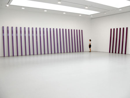 | JOHN McCRACKEN September 11 - October 18, 2008 Opening reception: Thursday, September 11, 6 - 8 pm David Zwirner is pleased to present an exhibition of new work by John McCracken. The artist was the subject of a solo exhibition at S.M.A.K. in Ghent, Belgium in 2004. His work has been featured prominently in recent major group shows including documenta 12, Kassel, Germany (2007); The Los Angeles Art Scene, 1955-1985, Centre Georges Pompidou, Paris, France (2006); A Minimal Future? Art as Object 1958-1968, The Museum of Contemporary Art, Los Angeles, California (2004); and Singular Forms (Sometimes Repeated): Art From 1951 to the Present, Solomon R. Guggenheim Museum, New York (2004). On the occasion of this solo exhibition� the artist�s fourth at David Zwirner�Radius Books will publish John McCracken: Sketchbook. Since the mid-1960s, John McCracken has been a key figure in the conceptual expansion of abstract art, in particular, Minimalism. While the artist has explored many geometric formats during his career, he is best known for his �planks��monochromatic, rectangular sculptures that lean against the wall. The sculptures consist of plywood forms coated with fiberglass and layers of polyester resin. Despite the seemingly industrial finish, each work is meticulously crafted and taken to a high polish by hand. The resulting form is strikingly brilliant, offering the viewer�s reflection as a reminder of the heightened physicality of pure abstract form. Illusorily transparent, the works seem to emanate light, recalling McCracken�s 1960s association with the Southern California �light and space� movement. This exhibition consists of multi-part sculptures, comprising nearly 100 components. In a panoply of colors, the singular elements, ranging from 8 to 10 feet in height, suggest the broad chromatic spectrum of the natural world. With deep and vibrant hues, each work is a meditation on absolute color, occupying the space between sculpture and painting by proposing volumetric color as its own conceptual entity. This exhibition marks a departure from the austerity and economy of form that has characterized McCracken�s most recent exhibitions, instead celebrating abundance and discovering rhythm through color. To create this new body of work, the artist has altered the proportions of his renowned planks, eschewing frontality in favor of a slender construction and almost equilateral footprint. Engaging both the wall and the floor, like the planks, these new works adhere to the rational laws of gravity, but appear to transcend them, channeling energy in multiple directions. Deceptively simple, the works simultaneously refer to nothing and possibly everything. The groupings in this exhibition conjure an image of humanity, figuring individuality, heroism, diversity, and interdependence. Exceeding the representation of a singular entity, however, the works concurrently function as a critical investigation of existence and levels of reality. McCracken has said, �All things are essentially mental. Matter, while quite real on the one hand, is on the other hand composed of energy, and in turn, of pure thought.� Amid the boundaries of art and architecture, McCracken creates entirely new connections to Minimalism�s central themes by suggesting the integrity of abstraction as a psychological and physiological process. Please join us and Radius Books Saturday, September 13 at 11am for a talk and book signing with the artist. John McCracken: Sketchbook is an exquisitely produced facsimile of the treasured sketchbook used by the artist in the 1960s. A supplemental booklet features an interview with Neville Wakefield and color photographs of the realized sculptures. | ||||