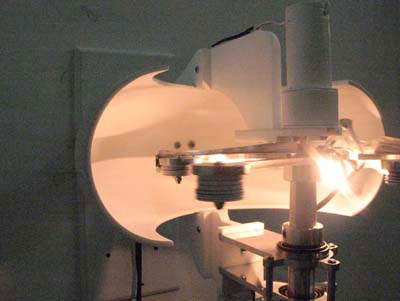 | "Who Made Who� by Erik Guzman September 12th-October 19th, 2008 Reception Friday, September 12th from 7-9 pm Hours, Fri-Sun 12-6 and by appt. The Front Room gallery is pleased to present �Who Made Who� a solo exhibition of sculptural work and drawings by Erik Guzman. This September Guzman will unveil an impressive body of new work that is a realization of artifacts and ideas from a self-composed mythology. Kinetic, light emanating sculptural work paired with delicately detailed etched glass drawings, illustrate Guzman�s mythos of the machine. Featured in this exhibition will be three sculptural works which incorporate dazzling light, polished aluminum and plexiglass; activated by the presence of a viewer, rhythmic light patterns consume the architecture of the gallery as spinning wheels cast long swirling shadows across the floor and onto the walls, that gradually form, take over the space and then subside. The accompanying etched glass plates exemplify Guzman�s aesthetic, which combines graphic icons, church architecture and components from Japanese patterns and temples. Guzman�s ethereal etched glass panels exist in the minute space fractions of an inch from the wall. The etching is transparent, the glass all but invisible, but the fine lines cast unearthly graphic imagery onto the wall, the drawing is made from the diffusion of light, sharp lines defined from shadow. Erik Guzman has been active as an artist in Williamsburg, for 9 years. Among many professional accomplishments are his LMCC GAPS grant award, Cue Foundation residency, LMCC space grant, a Joan Mitchell nomination. He has exhibited nationally at Smack Mellon, El Museo Del Barrio (S Files), Front Room Gallery, Soap Factory, Hillwood Museum, Dumbo Art Festival, The Kitchen, Exit Art, St. Marks Church Gallery. International exposure includes shows at Museo de Arte de Puerto Rico, El museo de arte de Caguas, El Museo de Las Americas, Gallery Tezz, Tokyo, Japan. Erik Guzman is also a founder of Goliath visual space, a nonprofit artist run organization, which has served as both protagonist and presenter of emerging artist since 1998 | ||||
