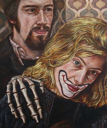 | ALEX TENNIGKEIT | A Hint of Lightness Ausstellungsdauer: 9. März - 16. April 2012 Eröffnung: Freitag, 9. März, 2012, 18:00-22:00 Uhr “Früher glaubte ich, menschlich zu sein sei das höchste Ziel, das ein Mensch sich stecken könnte, aber ich sehe jetzt, dass es dahin führte, mich zu zerstören. [...] Ich habe nichts mit der knarrenden Maschinerie der Humanität zu tun – ich gehöre der Erde! [...] Ich kann um mich alle meine verrückten Ahnen ums Bett tanzen sehen, wie sie mich trösten, mich anfeuern, mich mit ihren Schlangenzungen anpeitschen, mit ihren lauernden Schädel angrinsen und anblecken. Ich bin unmenschlich!” (Henry Miller, Wendekreis des Krebses | Tropic of Cancer, Paris 1934) „A Hint of Lightness“ (dt.: „Ein Hauch von Leichtigkeit“) lautet der Titel der neuen Einzelausstellung von Alex Tennigkeit und konfrontiert den Betrachter doch mit den existentiellen Themenkomplexen von Tod und Gewalt. Ins Zentrum der Ausstellung stellt die Künstlerin die Beschäftigung mit dem Selbstporträt, vorwiegend wiedergegeben als Kopfbild aber auch als Bruststück und Ganzfigur. Beispielhaft ist die den Betrachter geradezu bedrängende großformatige Leinwand „Gier nach Transgression (Selbst als Monster)“, welche das Bildnis der nach vorne gebeugten Künstlerin in der Totalen zeigt, fokussiert auf den Akt des Verschlingens eines vor ihr wüst aufbereiteten Haufens blutiger Innereien, aus dem sie sich gerade ein Herz in gefräßiger Gebärde einverleibt. Herausfordernd blickt die Protagonistin den Betrachter an, während sich über ihrem wirr gelockten Haupthaar ein interstellares Vakuum aus dunklen Blau- und Violetttönen zusammenbraut. Das Verschlingen blutigen Fleisches und roher Eingeweide in Tennigkeits konfrontativer Malerei erscheint als eine absichtsvolle Inszenierung abjekter Gegenstände, die im Betrachter starke affektive Reaktionen hervorrufen wie Ablehnung, Verachtung oder Ekel bis hin zum Brechreiz. Dabei hängt die Abjektion, welche – zugleich vom Gefühl der Faszination begleitet – auf die Grenzüberschreitung ethisch-moralischer Tabus abzielt, vom individuellen Gemüt des Rezipienten ab und steigert „[...] seine Wirkung durch die Macht des Imaginären“, indem es wie das Obszöne stets auch auf das Nicht-Sichtbare und Nicht-Zeigbare verweist. 1 In ihrer 20-teiligen Reihe von Porträtmalereien zusammengefasst unter dem übergeordneten Titel „Selbst als Allegorie“ zielt Tennigkeit ebenfalls auf eine Überschreitung der darstellerischen Konventionen ab, um die Grenzen der Repräsentation im Bild auszuloten. So wandelt, kombiniert und maskiert sie die eigene Physiognomie im freien Rollenspiel, wobei die Künstlerin im Prozess der Motivaneignung selbst die Rolle der Autorin, Regisseurin, Visagistin und die des Models einnimmt. So entstehen realistische, aber dennoch merkwürdig undurchschaubare Charaktere, die beim Betrachter ein Gefühl zwischen Pathos und Entfremdung provozieren. Die Arbeit „Selbst als Allegorie: Doll of the World“ präsentiert das rundum stark angeschnittene Konterfei der Künstlerin als Puppe, deren grelle Maskerade sich durch übergroße Kulleraugen, dem clownesque aufgemalten Wangenrouge sowie einer den Blondschopf bekrönenden überdimensionalen pinken Schleife auszeichnet. Die vergleichsweise klein proportionierten Hände halten das Symbol des religiös-christlichen Kreuzes und eine weltliche Machtinsignie. Weitere Varianten dieser wohl kalkulierten Effektdramaturgie wählen das Gesicht der Künstlerin als Schauplatz grotesker Maskeraden, wüster Verstümmelungen und provokanter Abjektionen und präsentieren die Künstlerin mal als personifizierten Tod im karnevalesken Skeletttextil, im vermeintlichen Zwiegespräch mit den Ahnen oder im Ringkampf mit dem Alter Ego. Vergleichsweise analytisch, aber im wahrsten Sinne ‚unter die Haut‘ geht das im gleichen Format gehaltene Bildnis „Der Schnitt“ mit der detailreichen Darstellung einer Frank H. Netters Anatomieatlas nachempfundenen Sektion eines menschlichen Schädels. Frontal betrachtet erweist sich das Porträt durch den unterhalb des Kinns anschließenden weißen Hemdskragen als das eines Mannes, welcher sich effektvoll gegenüber dem homogenen graublauen Hintergrund abhebt. Die Ausstellung kulminiert in der bühnenartig inszenierten „executio in effigie“ (Strafe am Bildnis), in welcher sich die Künstlerin in einer lebensgroßen Malerei – kopfüber hängend – in einem „Richtpavillon“ (A.T.) darstellt. Dieser referiert in seinen bautechnischen Einzelheiten sowohl auf einen schmuckhaften Gartenpavillon als auch auf die Architektur eines dreisäuligen Galgens, um nicht zuletzt auf die historische Bedeutung des Ausstellungsortes am Strausberger Platz als im 16. Jahrhundert in der Nähe gelegenen Richtplatz der Stadt Berlin hinzuweisen. Durch die Form der künstlerischen „Schein-Selbsthinrichtung“ besetzt die Künstlerin eine exklusive, zirkuläre Position, indem sie sich das Medium der Malerei zunutze macht, um darin die Grenzen von Raum und Zeit zu überwinden, denen der lebende Körper ausgesetzt ist. 2 Das Spiel mit der Ambivalenz zwischen Komik und Verzweiflung durchzieht die gesamte Ausstellung und drückt sich auch in der Wahl des ironischen Ausstellungstitels aus: „A Hint of Lightness“ wendet sich erbittert an den Betrachter, untergräbt und schafft Distanz im gleichen Atemzug, ist Ausdruck von Grenzerfahrung angesichts der Frage nach der Erwartung des Kunstbetrachters und der Rolle des Künstlers in der heutigen Gesellschaft. english version “Once I thought that to be human was the highest aim a man could have, but I see now that it was meant to destroy me. … I have nothing to do with the creaking machinery of humanity – I belong to the earth! … I can see about me all those cracked forbears of mine dancing around the bed, consoling me, egging me on, lashing me with their serpent tongues, grinning and leering at me with their skulk
