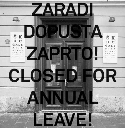 | CLOSED FOR ANNUAL LEAVE! 22. 1. � 8. 2. 2009 Participating artists: Damijan Kracina, Tanja La�etic, Polonca Lov�in, Irena Pivka, Tadej Pogacar, Sa�o Sedlacek, son:DA, Tina Smrekar, Miha �trukelj, Toma� Toma�in, Matej Andra� Vogrincic. Curator: Alenka Gregoric Co-curator: Tev� Logar A variety of reasons influences the rationale of an exhibition. An exhibition often reflects the affinity of the author of the concept, be it an artist or curator. It is often the result of a current situation, even of a wish to swim with the current art flow, which constantly changes course and, consequently, the exhibition programs of institutions. An exhibition can also act as a trigger, or is the consequence of a reflection, of most of the society and environment we live in. This exhibition was instigated by the participation of �kuc Gallery in a two-year project, Land of Human Rights, whose concept stems from the Universal Declaration of Human Rights, which it addresses through the prism of art. The show also logically continues and completes the story begun by �kuc Gallery within the scope of the Land of Human Rights project with the Article 23 exhibition last year. To avoid representational approaches and the usual selection of works of art, the exhibition Closed for Annual Leave is 'tediously' declarative in form. It focuses on the specifics of the local art scene and seeks to avoid presenting artistic projects on the issue, which usually flirt with activism. Thus, it does not enable direct contemplation about to works of art, but invites visitors to think. The idea or concept of the exhibition is rather simple. Collaborating artists received a symbolic amount to enable them a day of paid leave, while the gallery staff took the right to rest and have free time. The doors of the gallery will remain closed throughout the duration of the exhibition, as the concept is precisely what is indicated by the title: Closed for annual leave. The gallery will be closed for three weeks, and not only to the public � the gallery staff will do only what is absolutely necessary and go on holiday, or at least stay at home most of the time. The guiding principle of the exhibition is �Everyone has the right to rest and leisure, including a reasonable limitation on working hours and periodic holidays with pay.' The statement is not a figment of the imagination, or a derogatory remark aimed at an individual or a social group, but a sentence from Article 24 of the Universal Declaration of Human Rights of 1948. Today, this can only evoke a bitter grin, as it is absurd in its having entirely positive intentions, but seems comic or tragic-comic when applied to real life, because in the case of 'self-employed cultural workers', it is far from reality (all participating artists have the status of self-employed cultural workers). The exhibition project is not an appeal to the authorities to change things, a lament over our destiny, or an attempt to present ideas for resolving the situation; we have simply taken time off to rest. And, naturally, we do not fool ourselves that this can change reality. Closed for annual leave is a statement we were used to when we lived in socialism, but is unimaginable in the era of capitalism. A gallery is no exception. As we depend on public funds, which we have to apply for every year, we cultural workers in the non-government sector are forced to produce too much. Every year we can easily fall into a trap, as (too) few applications usually mean less money, and therefore the scope of production exceeds the number of staff of the institution who can carry out the program well and independently. In this respect, Closed for annual leave will serve as an 'excuse' for the leisure time or holidays of the gallery staff � because we cannot afford paid leave on the burden of the government, because we could not justify this expense to our backers, which has not been earmarked for self-employed workers in culture, students and the unemployed. But we can enable a day off to artists. We wanted to enable a day of paid leave for each of them, and the transferred amount was paid as royalty for participation in an exhibition which is acceptable according to the legislation of our backers. It is up to the artists as to how they take advantage of that day, they can do what they like, as we will not ask for any reports, which is usually something that cultural workers, recipients of public funds, waste heaps of time on. After all, �kuc Gallery is closed for annual leave. | ||||