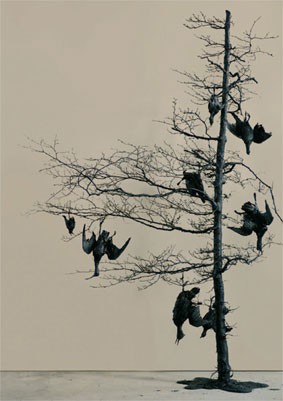 MARK DION, Game Bird Group (Tar and Feathers), 2006, mixed media 370 x 270 x 160 cm. Ausstellungsansicht: Kunstraum Dornbirn Foto A. Bereuter. Courtesy Georg Kargl Fine Arts, Vienna | |||