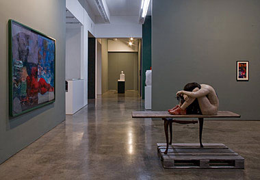 | Gladstone Gallery is pleased to announce an exhibition of new work by Andro Wekua. Viewing the past as a spiral of infinite reoccurrence, he creates enigmatic tableaux questioning the intersections of history, memory, and fantasy. In the new sculpture, paintings, collages, and film included in this exhibition, Wekua explores history as a chain of repeating events and emotions, that both heightens a sense of disassociation even as it sustains one�s inner-life. Many elements of Wekua�s formal language reappear throughout the various media he employs. Images that could be family snapshots or advertisements haunt the base layers of his collages as the artist�s hand drowns them in color, traces attenuated facial features, and obliterates the composition with interlocking geometric shapes. The question lingers whether what is buried is lost, or purposefully hidden. Out of these collages emerge not just recurring images but also the basic formal grammar of Wekua�s visual world. The young boys and girls ripped from the photo albums or magazines, scarred or decorated in the collages, become the sculptures isolated in colored vitrines, or hiding on tabletops. While sometimes a very literal boundary separates these children from the outside world, in many cases these figures are secluded by unknown forces, whether self-imposed or the product of past experience. This estrangement creates an uncanny sensation as twinned figures seemingly stand-in for the possibilities of autobiography or for the ramifications of earlier events. Through these doppelgangers, he explores an infinite division of self as the prerequisite for the desires that structure self-image. Wekua betrays the exuberant colors and fantastic vignettes as tinseled disguises for melancholy nostalgia. While his engagement with the past elicits a sense of lonely isolation, there seems to be a palpable desire for a shared understanding of one�s inner life that unites the various enigmatic mis-en-scene through doubling. In his new film, Wekua tracks these reoccurrences, drawing a connection between the stasis of immobility and existential repetition. Andro Wekua was born in 1977 in Georgia, and studied visual arts there and in Basel, Switzerland. He has been the subject of solo exhibitions at numerous museums, including Neue Kunst Halle, St. Gallen, Switzerland; The Rubell Family Collection, Miami; Kunstmuseum Winterthur, Switzerland; Museum Boijmans van Beuningen, Rotterdam; and Hydra Workshops, Greece; and he has participated in various group shows including the 4th Berlin Biennial in 2006. He will have upcoming exhibitions at the Camden Arts Center, London; the Frans Hals Museum, Haarlem; and Le Magasin, Grenoble. A fully illustrated artist�s book will accompany this exhibition. Advance Media Notice Dieter Roth �Drawings� April 5 through May 3, 2008 Gladstone Gallery is pleased to present an exhibition of drawings by artist Dieter Roth. Drawn between 1977 and 1990, the bundled groups shown here represent a central part of his oeuvre, rarely exhibited during his life. These pieces represent a visual diary of sorts, charting both his morale and artistic production. While appearing in the Kopiebucher that he created in small editions, this exhibition marks the US debut of some of these most telling and essential works from this fascinating artist. Anish Kapoor Opens May 12, 2008 Known for sculptures in which the union between organic forms and sensual materials verges on the sublime, Anish Kapoor continues to map a spiritual terrain demarcated by a plastic vocabulary of voids, vessels, circles, and squares. In this exhibition of new works, Kapoor simultaneously explores both purity and earthiness in materials as divergent as polished stainless steel and dyed wax and works in scale from the monumental to the intimate. Kapoor�s forms become, as Homi Bhabha wrote, a �living tissue, a contingent and relational medium,� that seek to unite the act of viewing with a near spiritual awakening. | ||||