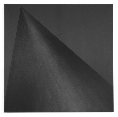 There is a latent sexuality and frisson to the almost symmetrical pairing of side-by-side cones in Clamp (1965), the straight, sharp shape of the forms expedient for their uninterrupted touch � a coupling whose corporeality is compounded by the cleaving (or clamping) together of two separate canvases along the line in which they meet. Yet even when executed with graphite on paper as in the small drawings Lozano drafted to push her ideas and prepare for her canvases, the sense of three-dimensionality and coercive charge of the abstract forms feels palpable.