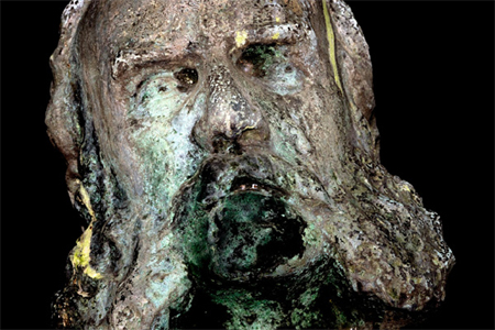 | ESKO M�NNIKK� BLUES BROTHERS Opening Friday, September 10 During the launch of the Berlin Gallery District ESKO M�NNIKK� Opening Friday, September 10, 18:00-21:00 Upon first glance, the faces in M�nnikk��s new series appear ghostly, hauntingly expressionless and discoloured, calling to mind the blue pallor of a drowning victim or the blackened skin of a coal miner returning from a day at work. For Blues Brothers, M�nnikk� photographed the statues of Milan�s famed Cimiterio Monumentale (Monumental Cemetery), known for its artful crypts and honourable dead. Strikingly human, the subjects of M�nnikk��s series are in a state of beautiful yet disturbing decay, weathered by years of exposure to the elements. In one image, the original patina of brushed metal is still visible, while green moss begins to creep around the features of the sullen face; in another, a carefully down-turned mouth is rendered into an even more tortured expression by the tinted oxidation of the figure�s chin and facial hair. M�nnikk��s portraits show a poignant vulnerability, and the marred faces seem to betray an animated life once lived; they become death masks sheathed in the elements of nature, the very forces of which cast a life cycle onto the presumed permanence of the memorial stone relief and bronze work. As in his previous series, M�nnikk� has mounted the photographs from Blues Brothers in heavy, often found frames, a display tactic more readily associated with classical painting than contemporary photography. Framed in vintage wood, M�nnikk��s photographs do not read as harbingers of truth; rather, the specific presentation of the images blurs the documentary quality inherent to photography, furthering the ambiguity of the depicted faces. In this new series, M�nnikk� transforms sculptural objects into men, producing characters wrought with sorrow, suspended between life and death. The figures in Blues Brothers are without a setting; their faces occupy the entirety of the frame and they are shown against a neutral black or grey background. This is a departure from M�nnikk��s earlier work, in which the setting of the photograph sheds important light on the depicted characters. In his series of Finnish bachelors, for example, M�nnikk� shows the solitary men in their homes, surrounded by personal objects in a seemingly everyday arrangement. Borrowing from classical portraiture, these objects serve as attributes for the men themselves, cluing the viewer in on different aspects of the subject�s life and providing the means by which a narrative might be strung together. For another series, MEXAS (1996-97), M�nnikk� photographed people living in the United States near the Mexican border, set against the backdrop of their own homes or the local landscape. When aligned through M�nnikk��s lens, the subject�s faces and their surroundings build a myth of belonging, of arriving at a place called home, yet still tinged by an ambiguous air of discomfort or displacement. The ambiguity of truth in Blues Brothers and MEXAS also calls to mind M�nnikk��s previous series, Harmony Sisters (2004-ongoing), in which the artist photographed fragments of live animals�a mouth, a hide, an eye, etc.�documenting the outer anatomy of an array of creatures. The resulting images provide a macro view that is rarely straightforward: a lolling tongue could belong to a cow or horse, a roll of skin and patch of fur to a variety of beasts. In this way, M�nnikk��s works possess many truths that demand to be weighed against one another. M�nnikk� himself has said that the picture confirms whether or not an object is real. Indeed, after careful inspection, the men of Blues Brothers reveal themselves to be neither dead nor alive; rather, they emerge as very real sculptural objects, subject to the inevitable process of aging, much like the men whose graves they mark. Esko M�nnikk� was born in 1959 in Pudasj�rvi in the northern part of Finland. He lives and works in Oulu. In 2008 he was awarded the prestigious Deutsche B�rse Photography Prize. The same year he presented "Cocktails 1990-2007" at Millesg�rden, Liding�, Kulturhaus, Lulea and Bomuldsfabriken Kunsthall Arendal. Other solo exhibition include Finsk-Norsk Kulturinstitutt, Oslo, 2004, the Hasselblad Center, Gothenburg, 1999, the Malm� Konsthall, 1997, as well as Portikus, Frankfurt/Main, De Pont, Tilburg and Lenbachhaus, Munich, all 1996. He has taken part in numerous international exhibitions including the Venice Biennial, 2005, Johannesburg Biennial, 1997, S�o Paulo Biennial, 1998, "Contemporary Photography II: Anti-Memory," Yokohama Museum of Art, 2000, "Beyond Paradise," Shanghai Art Museum, 2003, Liverpool Biennal, 2004, "SEEhistory. Der private Blick," Kunsthalle z u Kiel, 2005, and the travelling exhibition "Investigations of a dog," organized by the Fondazione Sandretto Re Rebaudengo (2009-2010). M�nnikk� had numerous solo exhibitions at Galerie Nordenhake in Stockholm and Berlin. Exhibition period: September 11 � November 6, 2010 ESKO M�NNIKK� Er�ffnung Freitag, 10. September, 18:00-21:00 Die Galerie Nordenhake freut sich eine Ausstellung mit neuen Arbeiten von Esko M�nnikk� zu pr�sentieren. Der finnische Fotograf spielt in seinen Bildern mit der dokumentarischen Qualit�t des Mediums und erzeugt vielfache Ebenen der Realit�t und der Narration. Auf dem ersten Blick erscheinen die eindr�cklichen Gesichter seiner neuen Serie Blues Brothers gespenstisch ausdruckslos und verf�rbt; man f�hlt sich an die bl�uliche Bl�sse eines Ertrunkenen oder an die geschw�rzte Haut eines Kohlenarbeiters erinnert. F�r diese Serie fotografierte M�nnikk� die Statuen auf Mailands Friedhof Cimiterio Monumentale, der bekannt ist f�r seine k�nstlerisch interessanten Grabmonumente und die dort bestatteten Pers�nlichkeiten. Die frappierend menschlich erscheinenden Su