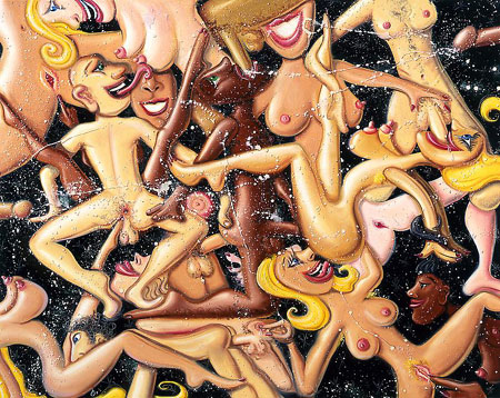 Kenny Scharf, Space Orgy , 2009 oil and glitter on linen, 48 x 60 inches / 121.9 x 152.4 cm signed Kenny Scharf '09 on back | |||