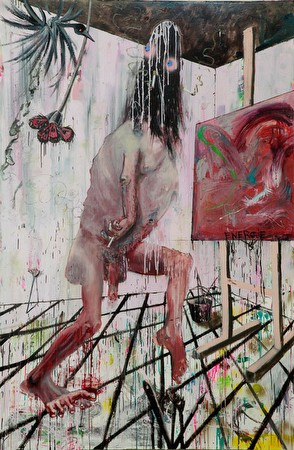 Andreas Golder, "selbst im alter mit gelungenem sp�twerk" 2011 oil on canvas 300 x 200 cm | |||