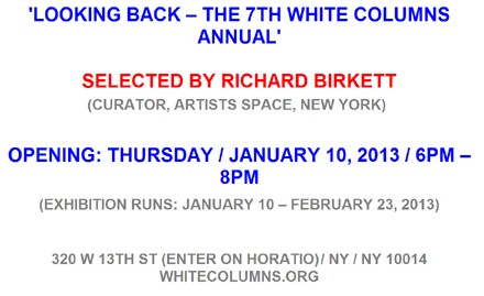 | White Columns: Looking Back / The 7th White Columns Annual - Selected by Richard Birkett - 10 Jan 2013 to 23 Feb 2013 Current Exhibition | ||||