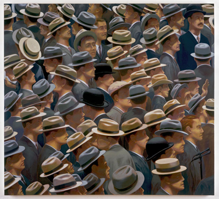 | Greg Drasler Dates: September 10 � October 10, 2009 Opening reception: Thursday, September 10, 6 � 8pm New York, NY�August 6, 2009�Betty Cuningham Gallery is pleased to announce an exhibition of new work by Greg Drasler, on view from September 10 through October 10, 2009. It will be the artist�s second exhibition at the gallery, located at 541 W. 25th Street, between 10th and 11th Avenues. The artist will be present for an opening reception on September 10th, from 6 � 8 PM. Included in the exhibition will be approximately ten large canvases, including three interiors and seven hat paintings. Developing out of previous work in this series, the hat paintings present an overview of a group of hatted men crowded onto the canvas creating a tightly knit composition. Although representational, the hats are the notes which unite the canvas into a subtly composed symphony. Drasler continues to develop the hats as a theme because each time he paints an object, �the act of painting repacks these things with new meanings�. The bowler, fedora, newsboy, and boater hats represented in these paintings are reminiscent of the thirties and forties, a period that has always held the artist�s fascination. Like the hat paintings there too is nostalgia for a time gone by in Drasler�s interiors. Although the room interiors do not feature human figures, these dreamlike paintings are not devoid of a human presence, and eerily include objects appearing to have only recently been deserted such as a small toy car at the foot of the chair in Mixed Marriage. This emptiness creates a longing to enter the artist�s dream world, a surrealist nostalgia for these times and places. In Country Place and its upside-down opposite Without Paddle, Drasler lets us enter his Japanese beach house in the first canvas and then flips the painting, removes the floor and we enter his boat house. A native of Waukegan, IL, Greg Drasler received his BFA and MFA from the University of Illinois at Champaign/Urbana. He began exhibiting upon moving to New York in the mid-1980s. Drasler�s work can be seen in the collections of Dow Jones, Inc.; Krannert Art Museum, Champaign, IL; University of Illinois, Champaign/Urbana, IL; New Museum of Contemporary Art, New York, NY: and Thurston Twigg-Smith, Honolulu, HI. Drasler has been the recipient of numerous awards and grants, including a New York Foundation for the Arts Fellowship in 1991 and a National Endowment for the Arts Fellowship in 1993. Currently he is an Assistant Professor at Pratt Institute and has also taught at Princeton University. The exhibition will remain on view through Saturday, October 10, 2009. For further information and/or images, please contact the gallery at 212.242.2772 or [email protected] Next exhibition: Abby Leigh �The Sleeper�s Eye�, October 15 � November 14, 2009 | ||||