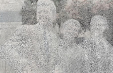 John Sparagana, Crowds & Powder: Kennedy Brothers, 2013 archival inkjet prints with oil stick, sliced and mixed on paper 25 x 19 1/4 inches | |||