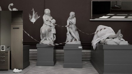| AILBHE NI BHRIAIN GREAT GOOD PLACES 24.09.11 - 05.11.11 Domo Baal is delighted to present a solo show by Ailbhe Ní Bhriain. Ní Bhriain will be showing a new series of four videos, collectively called 'Great Good Places'. The work takes the museum and the office as its settings and employs simple collage devices to explore the essential ambiguity of image space. These interventions set up tensions, overlaps and slippages – between surface and depth, place and placelessness, the real and illusory – to create scenes of suspension or displacement. Objects move from being incidental elements to active players in these scenes, negotiating the between–space and lending an unlikely coherence to its contradictions. While readily declaring its constructed–ness, the work also invites the viewer to inhabit its fluid illogic. The series borrows its title from the Henry James short story The Great Good Place – an allusion to the slippage contained within that narrative between dream and reality, and the presence of the hallucinatory in the mundane and vice versa. Drawing on James' story, this work proposes the image itself as a site of refuge and escape – a displaced elsewhere, a state of suspension, a Great Good Place. 'Great Good Places' a four–volume chapbook, presented as as set, in a signed and numbered edition of 100 will be published to accompany this exhibition and will be available from the gallery and also from the London Art Book Fair at the Whitechapel Gallery 23–25 September 2011. Ailbhe Ní Bhriain lives and works in Cork, Ireland, where she is a Lecturer in Fine Art at Crawford College of Art. She completed her MA at The Royal College of Art, London in 2004 and her PhD in Fine Art at Kingston University, London in 2008. In 2004 she won the Jerwood Drawing Prize Student Award for her video 'Immergence' and was selected in 2010 for 'Futures 10' at the Royal Hibernian Academy in Dublin. She is a current recipient of the Arts Council of Ireland, Visual Artists Bursary Award, and has held solo shows at the Butler Gallery and the Galway Arts Centre in Ireland. Her work has been widely exhibited in group shows internationally. Ailbhe Ní Bhriain and Domo Baal would like to thank the Arts Council Ireland/An Chomhairle Ealaíon, Culture Ireland/Cultúr Éireann and The Cork Film Centre for their generous support of this exhibition. + LONDON ART BOOK FAIR WHITECHAPEL ART GALLERY 23 - 25.09.11 NEW DOMOBAAL EDITIONS RACHEL ADAMS: DRAWNTHREAD AILBHE NI BHRIAIN: GREAT GOOD PLACES LEE EDWARDS: HOW TO DISAPPEAR COMPLETELY SHARON KIVLAND: LA MER EST SI BLEUE, LE ROUGE BAISER JEFFREY TY LEE AND TERUE YAMAUCHI: THE BUILDER + IPHGENIA BAAL: THE HARDY TREE MARCEL DINAHET: PASSAGES STEPHEN DUNNE: THE PHANTONM LIMB LEE EDWARDS AND NEILL KIDGELL: NEWLIFE LOTHAR GÖTZ: LOTHAR GÖTZ WORKS - 2011 SHARON KIVLAND: MES FILS II WALTER SWENNEN: I AM AFRAID I TOLD A LIE MHAIRI VARI DOMAIN 19.11.11 - 17.12.11 PREVIEW: SATURDAY 19 NOVEMBER 6-8PM | ||||