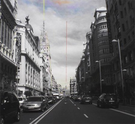 | ROBERTO INFANTES �Inexcusable cities� Opening: saturday 3th October 2009 / 8pm Exhibition: from October 3th to December 12th 2009 The city is the metaphor par excellence of contemporariness. That which signals modernity is city life. Man (civilised man) cannot be understood without the city. Wrapper and dream. Cellophane and coffin for progress. Civis and dump. The city is an artefact inhabiting us, building us. To our great regret, even if we choose to disbelieve or flee, cities live in us � cities that do not belong to town planners nor to architects, nor to politicians, �nor to God or to anybody�, in the verses by Garc�a Calvo. The modern city is the scenery of that which is real, the appearance of that which is real and has been sublimated as territory, the trace of a very short historical route in the wide arc of time that comprises the history of the world. However, we identify city and world, city and history, city and man, civis and reason, polis and progress. The work by Roberto Infantes in this first solo exhibition seems to place itself on that state of things � on that accumulation of accumulations � that is our modern urban environs, so as to establish a new set of semantic reverberations. As if from the phenomenon of the edified city, post-constructivist reasoning sprang � uncertainties about its actual cartography, abyssal crevices that heralded a new status of that feeding reality that inhabits us. R. Infantes starts from beautiful perspectives of cities, from aesthetic metropolitan framings, from perfect symmetries in black and white, from recognizable urban angles � from evidences of a canonical architecture formed by vertical and horizontal lines, by vanishing lines and geometries taken from that which is visible. And from this point, he seeks an internal and at once external weave of that which is real. A weave made out of contradictions which would lie, on the one side, in a fully powerful chromatic concept � but applied to the medium with a weird and subtle good taste � as against a photographic negation of colour; and on the other side, in his seaming together photography and painting. And this in turn rather twists the visual elements by his incorporating painting sometimes even on the transparency of glass, which may lead us, almost unsuspectedly, to recognize an experience that has, in my opinion, a more neatly conceptual character. A work whose exactness and technical making dodges the aestheticism of the immediate. The fact of walking on that uncertain edge of an apparent � paradoxical � preciousness should be interpreted as an ironic loop of a strictly personal nature. By this I mean an apparent beauty of the contrived document as regards the pictographic nature of the first medium (photography of urban abodes inhabited by man and his actions) and a play of transformation versus destruction from that very visual (apparently �beautiful�) cartography. In sum, a look at a moving space under the strain of opposites � plus I don�t know how much of deconstruction or of extinction of that which is real, or of reconstruction towards a new sense of the geometrical. Thus, Roberto Infantes�s cities become enigmatic under that rain of sharp colours that flows from their guts, perhaps graceful in this so cinematographic black and white, so apparently sumptuous and beautiful, like a ceremony of the unsuspectedly chaotic � yes, a ceremony of the inexcusable. Jos� Luis Loarce Ciudad Real, September 2009 ROBERTO INFANTES �Ciudades irremisibles� Inauguraci�n: s�bado 3 de octubre de 2009 / 20h Exposici�n: del 3 de octubre al 12 de diciembre de 2009 La ciudad es la met�fora por excelencia de la contemporaneidad. Lo que signa la modernidad es la vida en las ciudades. El hombre (civilizado) no se entiende sin la ciudad. Envoltorio y sue�o. Celof�n del progreso y f�retro. Civis y muladar. La ciudad es un artefacto que nos habita, que nos construye. Viven las ciudades en nosotros mal que nos pese o descreamos o huyamos. Ciudades que no son ni de los urbanistas, ni de los arquitectos, ni de los pol�ticos, �ni de Dios ni de nadie� en los versos de Garc�a Calvo. Es la ciudad moderna el decorado de lo real, la apariencia de lo real sublimado como territorio, el trazo de un trayecto hist�rico muy corto en el amplio arco de tiempo que constituye la historia del mundo; sin embargo identificamos ciudad y mundo, ciudad e historia, ciudad y hombre, civis y raz�n, polis y progreso. La obra de Roberto Infantes en esta primera exposici�n en solitario parece como si situara sobre ese estado de cosas, sobre esa acumulaci�n de acumulaciones que son nuestros modernos entornos urbanos para establecer una malla de nuevas reverberaciones sem�nticas. Como si al fen�meno de la ciudad edificada le empezaran a brotar argumentaciones poscontructivistas, incertidumbres en su cartograf�a real, grietas abisales que anunciaran un nuevo estatus de esa realidad nutricia que nos habita. R. Infantes parte de bellas perspectivas de ciudades, de est�ticos encuadres metropolitanos, de perfectas simetr�as en blanco y negro, de reconocibles �ngulos urbanos, en suma de testimonios de una arquitectura can�nica conformada por verticales y horizontales, por l�neas de fuga y geometr�as de lo visible. Y a partir de ah� busca una trama interna y a la vez externa de lo real. Una suerte de trama de contradicciones que estar�an, por un lado, en el concepto crom�tico con todo su poder �pero con un extra�o y sutil buen gusto en su aplicaci�n al soporte� frente a la negaci�n fotogr�fica del color, y por otro en la recostura que se opera entre lo fotogr�fico y lo pintado; que a su vez retuerce un tanto lo visual al incorporar en alg�n caso la pintura incluso sobre la transparencia del cristal, lo que nos llevar�a, casi insospechadamente, a reconocer en mi opini�n una experiencia de orden m�s netamente conceptual