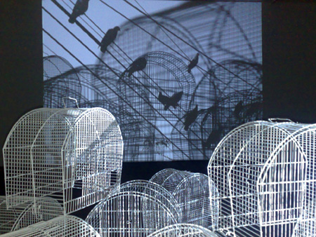 EDER SANTOS "Call Waiting", 2006 Video installation with 16 bird cages | |||
