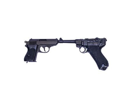 | Gretchen Faust �Mudra� 14th January � 3rd March 2010 Gretchen Faust�s third solo show at greengrassi consists of portraits of handguns. Photographed in pairs, the guns infer by absence and define by position the hand gestures referred to in the show�s title. A Mudra is a symbolic gesture performed with the fingers and hands to focus the mind and direct intention in the spiritual practice of Eastern religions. The show is a natural extension of the work Faust has shown in previous solo exhibitions at greengrassi including the cut paper pieces. Faust frequently uses a reflective central axis � a root or �spine� - to ground the form and meaning of her work in terms of its relational symmetry. Her work is characterized by an austere aesthetic with inference and absence employed as formal devices. The emphasis is on form, scale and function balanced by a personal integrity and intellectual exactitude. Gretchen Faust lives and works in Totnes, Devon. Previous exhibitions include �Reflections� curated by Jan Boelen & Hilde Vanleuven at Stadhisplein, Belgium; �Outside the Frame: Performance and the Object� at Cleveland Center for Contemporary Art; �Tattoo Collection� at Andrea Rosen Gallery, New York (touring to Galerie Daniel Buchholz, Cologne and Air de Paris & Urbi et Orbi, Paris); and solo shows with greengrassi, London and Pat Hearn Gallery, New York. | ||||