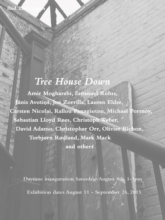 | Tree House Down Amir Mogharabi Emanuel Röhss Jānis Avotiņš Joe Zorrilla Lauren Elder Carsten Nicolai Rallou Panagiotou Michael Portnoy Sebastian Lloyd Rees Christoph Weber David Adamo Christopher Orr Olivier Richon Torbjørn Rødland Mark Mack 11 August – 24 October 2015 During August 2015, Ibid. Los Angeles will host a project inviting artists to exhibit and create new works. The event broadens a research -based initiative that monitors theprocess of dismantling the gallery's current premises. Tree House Down assesses the role ofagallery inthecontext of a rapidly growing creative community, working just ahead of property developers’ investment interests. In 2010, Amir Mogharabi conceived MatérielPerdu, a project staged with fellow artists to inaugurate a new Ibid. venue in East London. Using onlymaterials found on siteleft bythe previous tenant, Matériel Perdu defined a role forthe gallery at a particular location and time. Similarly, demographic andtopographical constraints in TreeHouse Down become dimensions in the ongoing development of a context imbued with material possibilities. Where means are no longer understood as ends, when the outcome of the very space is ambiguous, there is steadiness in the means, ultimately letting the ambiance serve as guide. For more information or images please email [email protected] Ibid. Los Angeles 675 S. Santa Fe Avenue Los Angeles, CA 90021 +1 (646) 220 7557 [email protected] Open Tues – Sat, 12 – 7pm www.ibidprojects.com | ||||